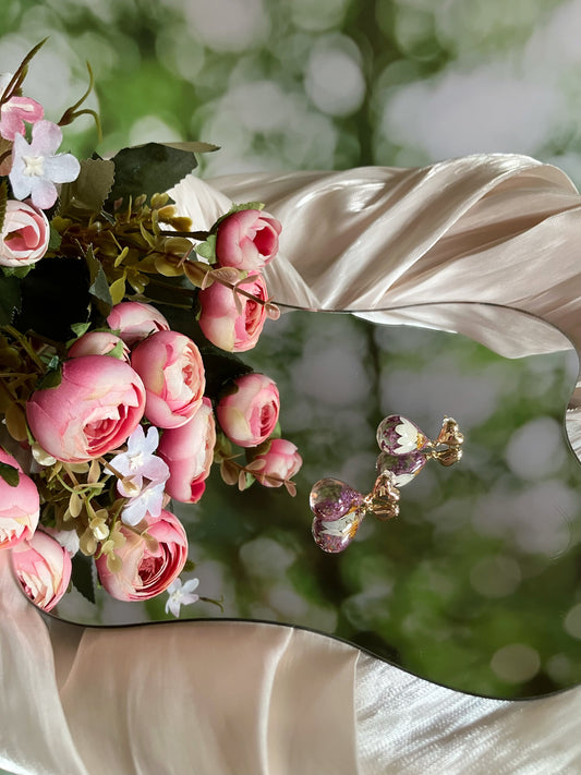 Purple flower small heart Earrings-Gift From Gardens 005