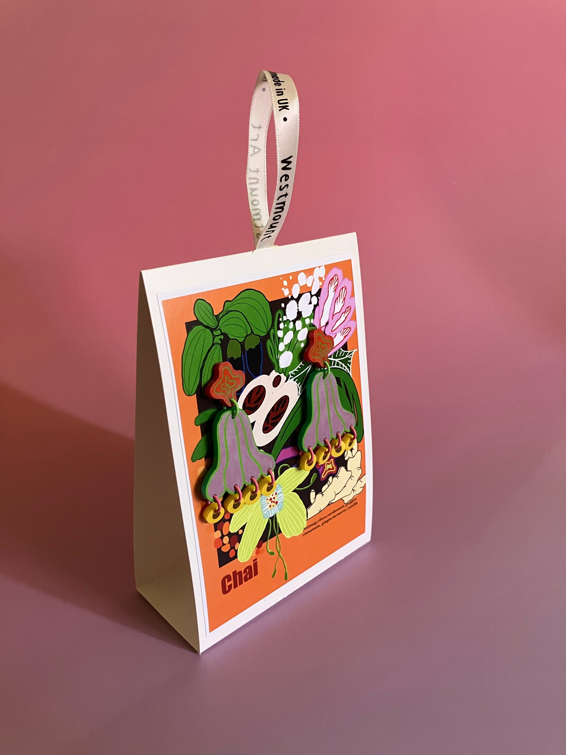 Handmade with acrylic and sterling silver post. Matching designs to the Wall Art Chai.