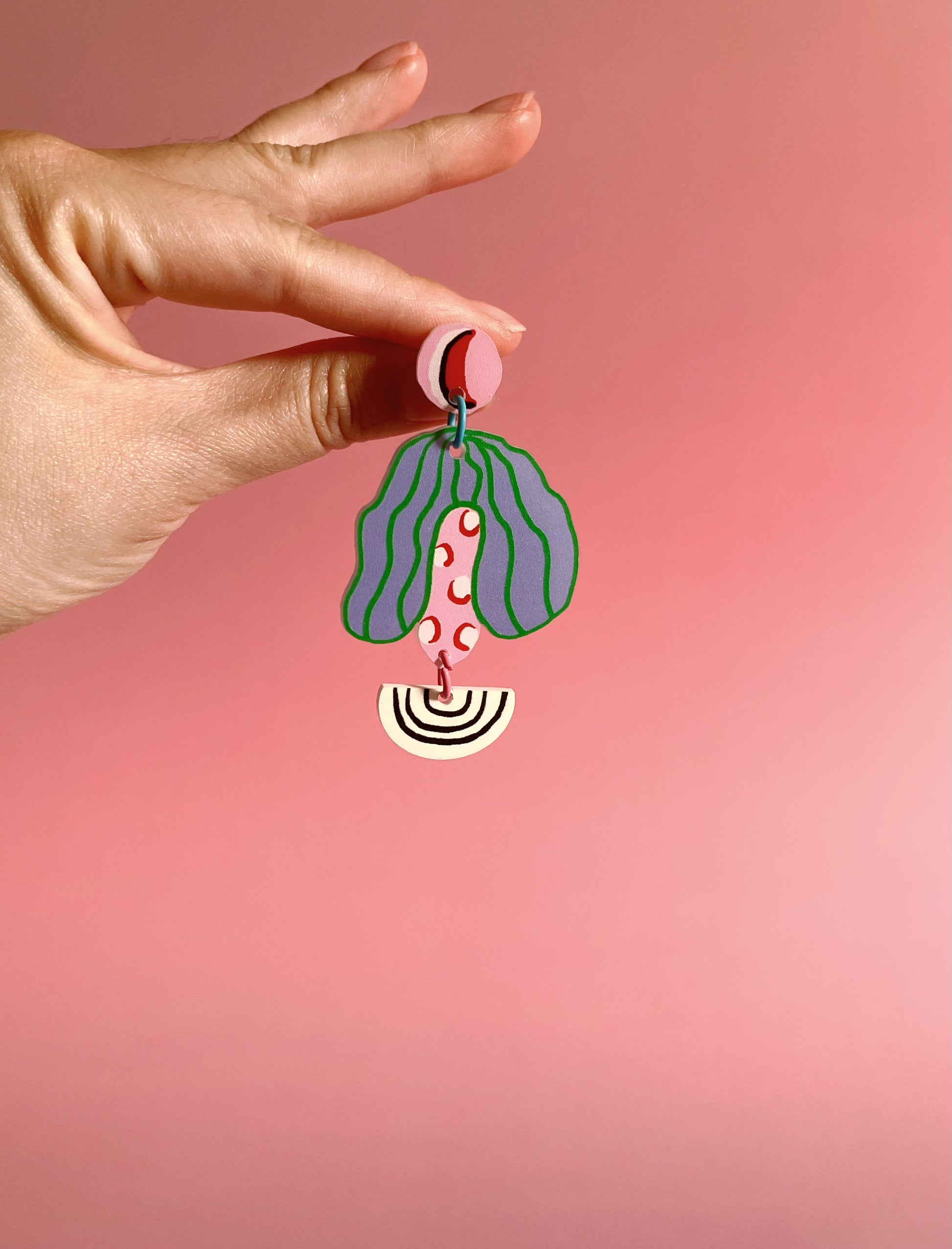 Handmade earrings with acrylic and sterling silver post. Matching designs to the Wall Art Heather.